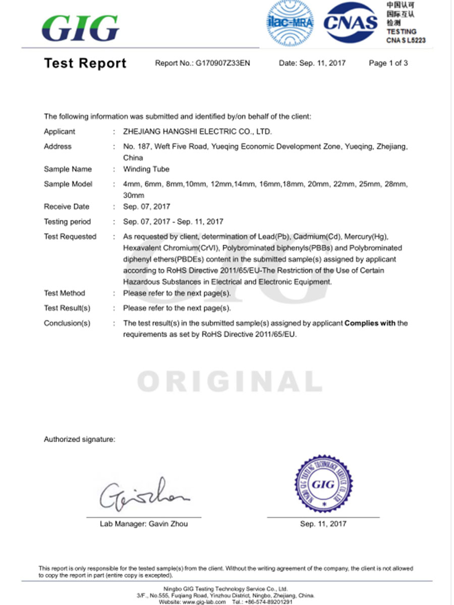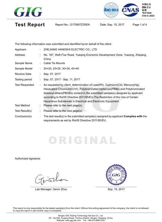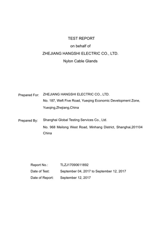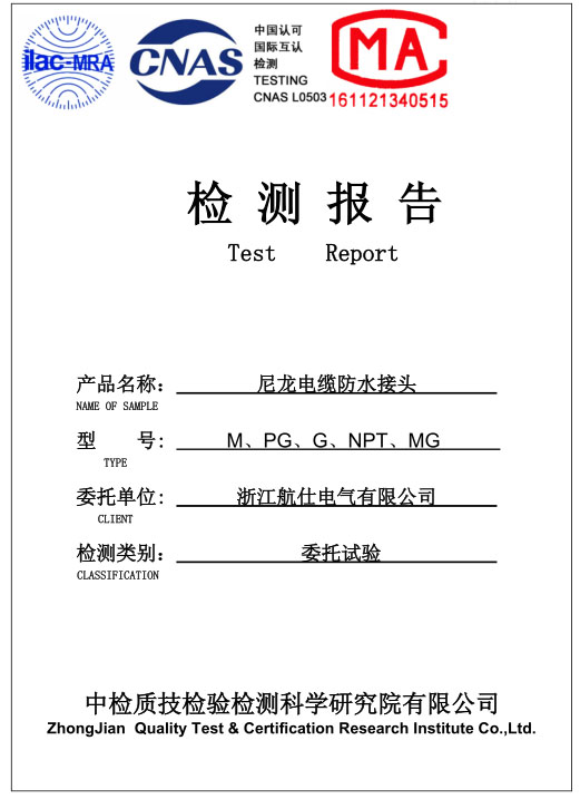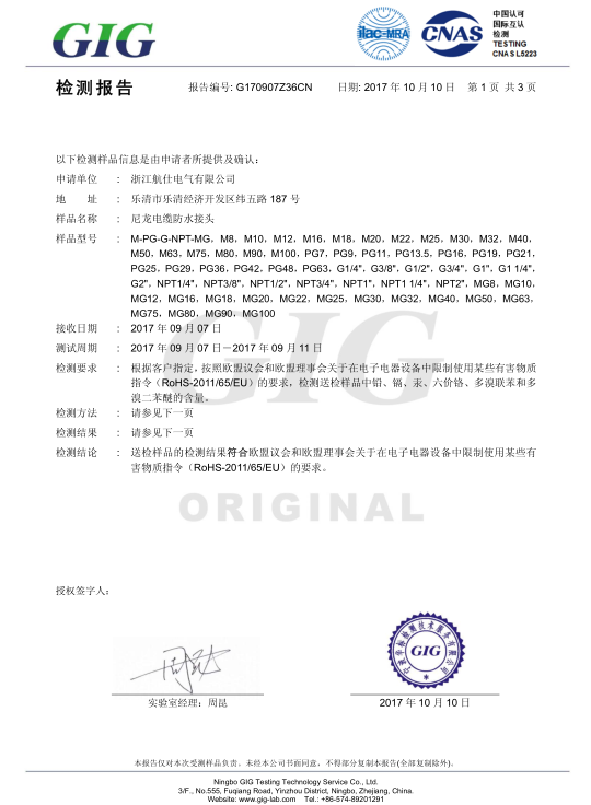 防水接头环保认证中文G170907Z36CN